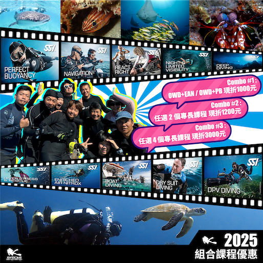 $$ 現折 1000 元! 提升水下續航力 or 掌握精準浮力,潛得更專業!✅ 組合2 - 任選 2 項專長課程