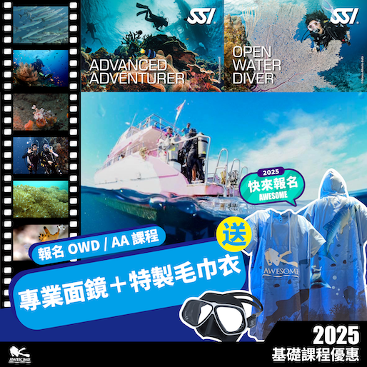 2025 基礎課程 限時優惠 準備好探索海洋了嗎? 現在報名 水肺潛水基礎課程(OWD / AA) 直接送你 專業面鏡一組 + 歐陞潛水特製毛巾衣一件! 你準備好踏入潛水世界了嗎? ✅ 零基礎也能學,輕鬆入門! ✅ 專業教練帶你安全潛入海底世界! ✅ 國際證照,一次學會,全球潛點都能玩! 海洋在等你,現在就出發! 私訊報名/了解詳情 SSI 基礎課程 官方Line